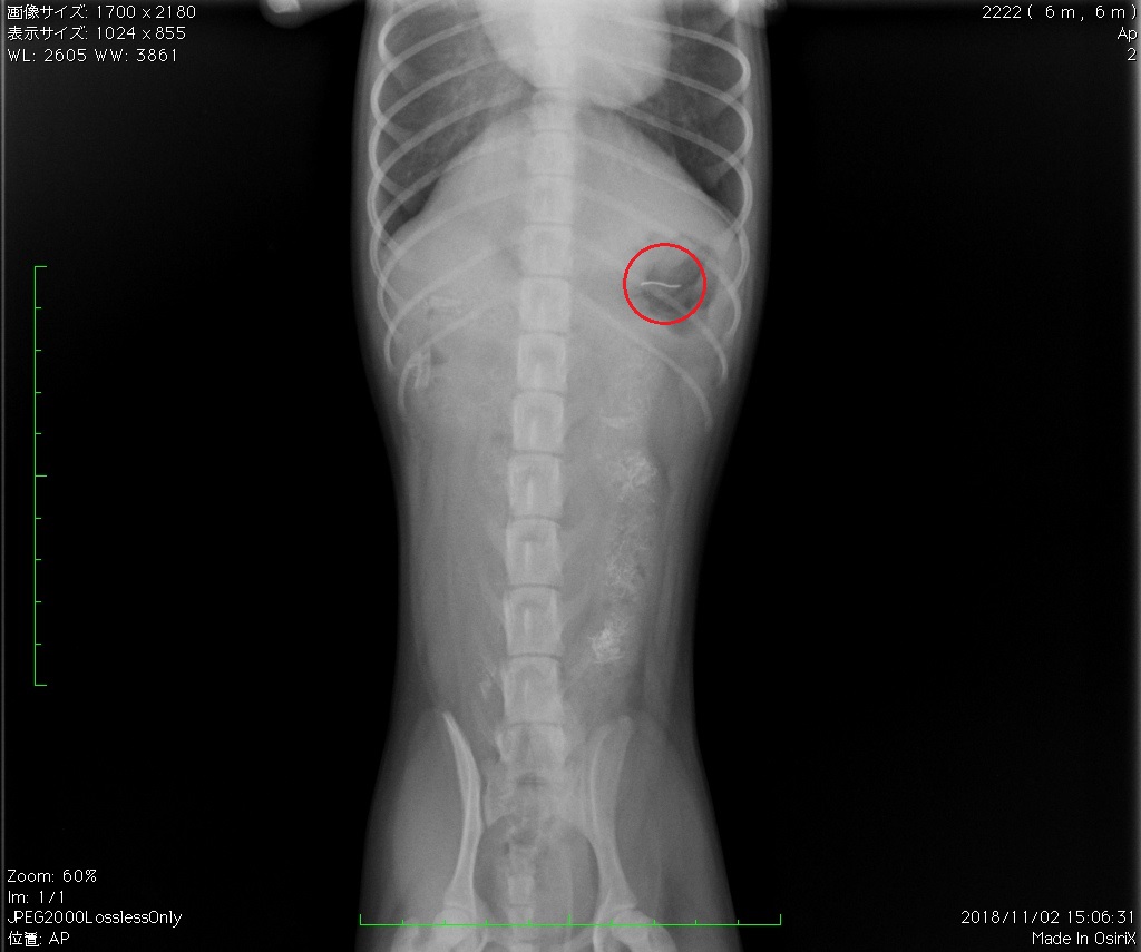 お腹のレントゲンを撮ってみると、